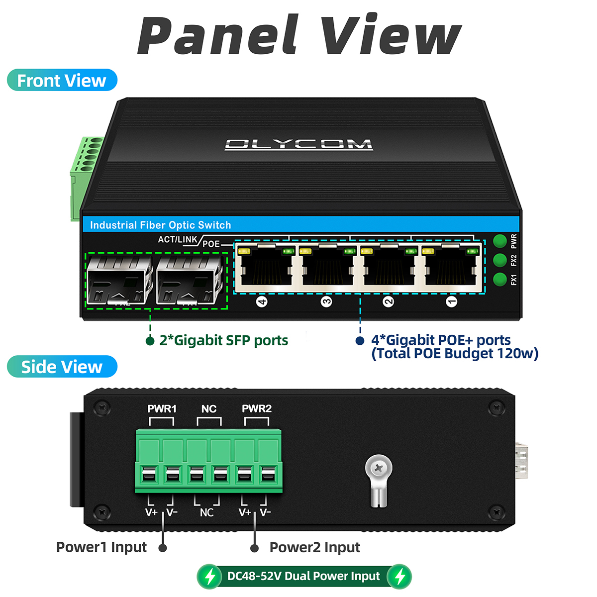 기가비트 POE 스위치 무관한 에테렌트 스위치 120W POE af/at DC48V 전력 입력