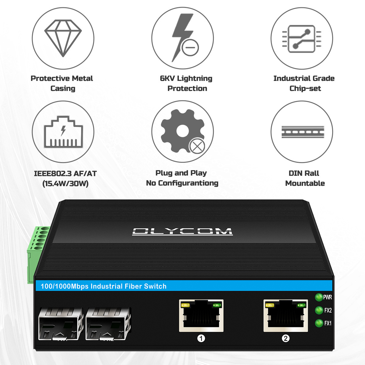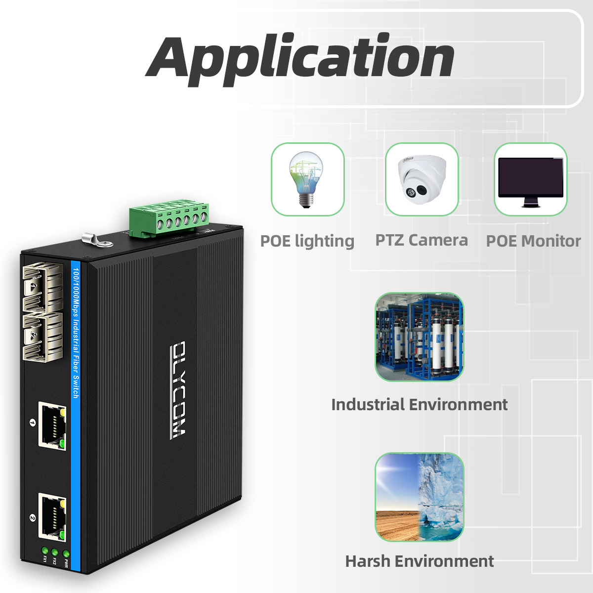 미니 광섬유 컨버터 기가비트 POE 스위치 2SFP+2RJ45 DC48V 전원 입력